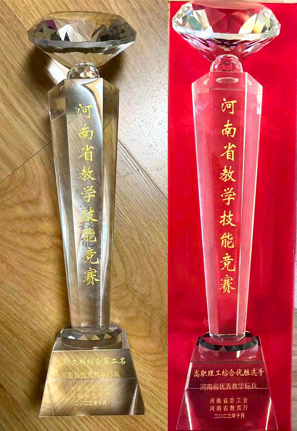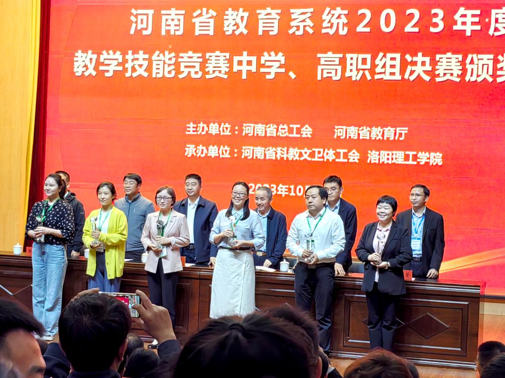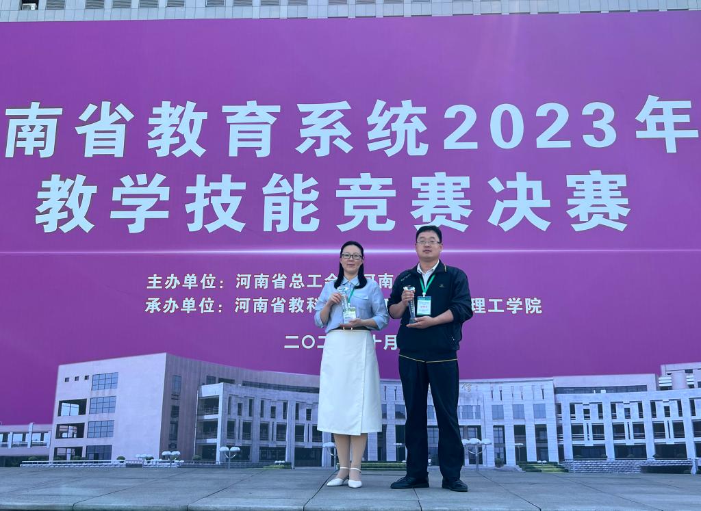 10月21日,从河南省教育系统2023年度教学技能竞赛现场获悉,公司教师韩冰、张晓勇分别荣获竞赛高职文科综合第二名和高职理工综合优胜选手的好成绩,并获河南省优秀教学标兵奖杯。