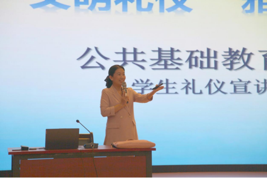 耿爽结合五年制员工实际,从形象、姿态、行为三个方面,向大家分享了需要学习和注意的礼仪内容,言语幽默、讲解生动、互动频繁,现场气氛轻松愉快。在场师生收获满满,并表示在之后的学习与工作生活中也将付诸行动,自觉规范个人言行。